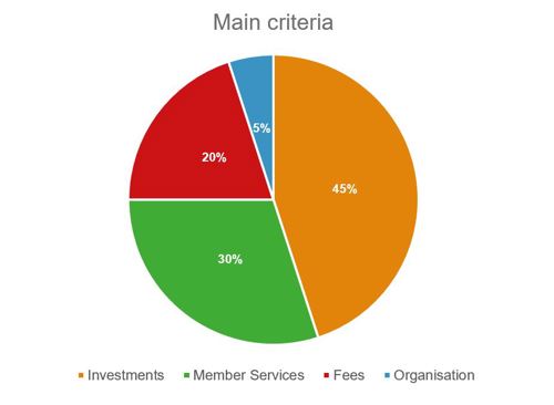 While investments carry the highest weighting in our ratings process, we believe member services are also vitally important for pension members. For that reason they account for 30% of our overall weighting.