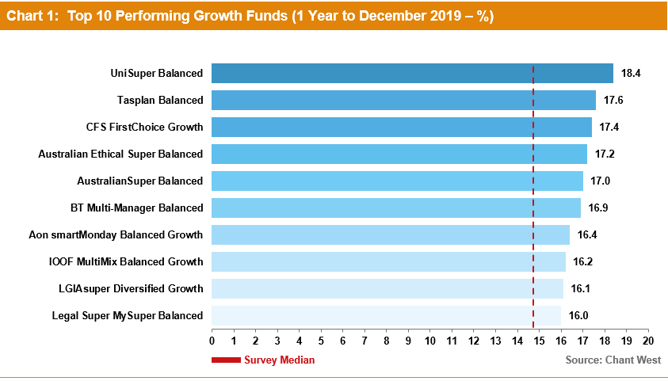 Chart 1 shows the year's top 10 performing growth options over the 2019 calendar year.