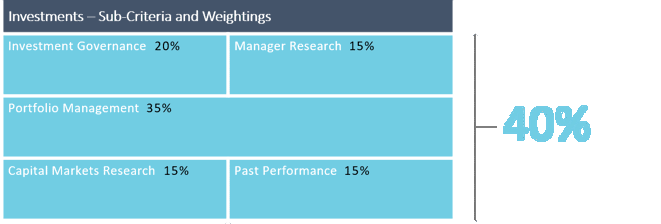 There is one vital quality, however, that all the best funds exhibit and that is good governance. Governance takes on even greater importance at a time when funds are experiencing rapid growth in their assets under management and, in many cases, in the size and responsibilities of their in-house investment teams. That is why governance carries a substantial 20% weighting in our overall investment scores.