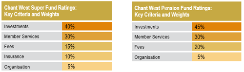 The main criteria Chant West uses for rating funds are shown in the table below. As in previous years, the winner of our premier awards, Super Fund of the Year and Pension Fund of the Year, will have to show strength across the board, but especially in the key areas of Investments and Member Services, which carry the highest weighting in the scoring process.