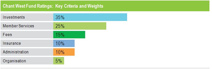 The main criteria we use for rating funds are shown in the table below. As in previous years, the winner of our premier award, Super Fund of the Year, will have to show strength across the board, but especially in the key areas of Investments and Member Services, which carry the highest weighting in the scoring process.