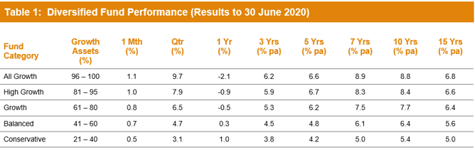 “While the end result was marginally negative, that still represents an excellent outcome given the economic damage wrought by the COVID-19 pandemic in Australia and globally. And it’s important to remember that funds had enjoyed an unprecedented run for almost 11 years through to early 2020. Even taking this year’s result into consideration, growth funds have returned an impressive 8.3% per annum since the GFC low point in early 2009. That’s well ahead of their typical return objective which equates to about 5.6% per annum.