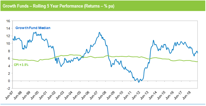 "This year's return won't reach the levels we've seen in some recent years but it's important to keep things in perspective. Growth funds have had a tremendous run averaging about 9% per annum over the past nine years, but that's really not sustainable and should be seen as the exception rather than the rule. Their typical long-term objective is to beat inflation by 3.5%, which would currently translate to a return of 5% to 5.5%, so a return of about 6.5% should be considered a good result.